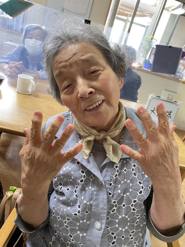 ネイルとハンドマッサージ☆彡 2023 6/22 レクリエーション一日の出来事洲本市デイサービス職員日記自立支援型 2023.06.22 2023.06.22 鮎原にあるネイルサロンの方に来ていただき利用者様にハンドマッサージとネイルをして頂きました😊 『今日は手を使わんとこかぁ』『嬉しいわー』と皆さん笑みがこぼれていました🎵 いつまでも若々しくいれることは活力にもなりいいですね💛 レクリエーション一日の出来事洲本市デイサービス職員日記自立支援型 よかったらシェアしてね! URL Copied! URL Copied! サプライズプレゼント(^^♪ ブルーベリー 関連記事 新たまねぎ 2022.06.06 サツマイモ掘れたよ🍠 2021.10.18 願いごとが叶いますように・・・★ 2023.02.20 外出支援でクラシックへ♫ 2022.01.27 メンズファーム始めました✌ 2021.10.09 🎍あけましておめでとうございます🎍 2023.01.11 野菜の苗を買いに🎵 2022.04.14 ジンジャーシロップ作り🍹 2021.07.30